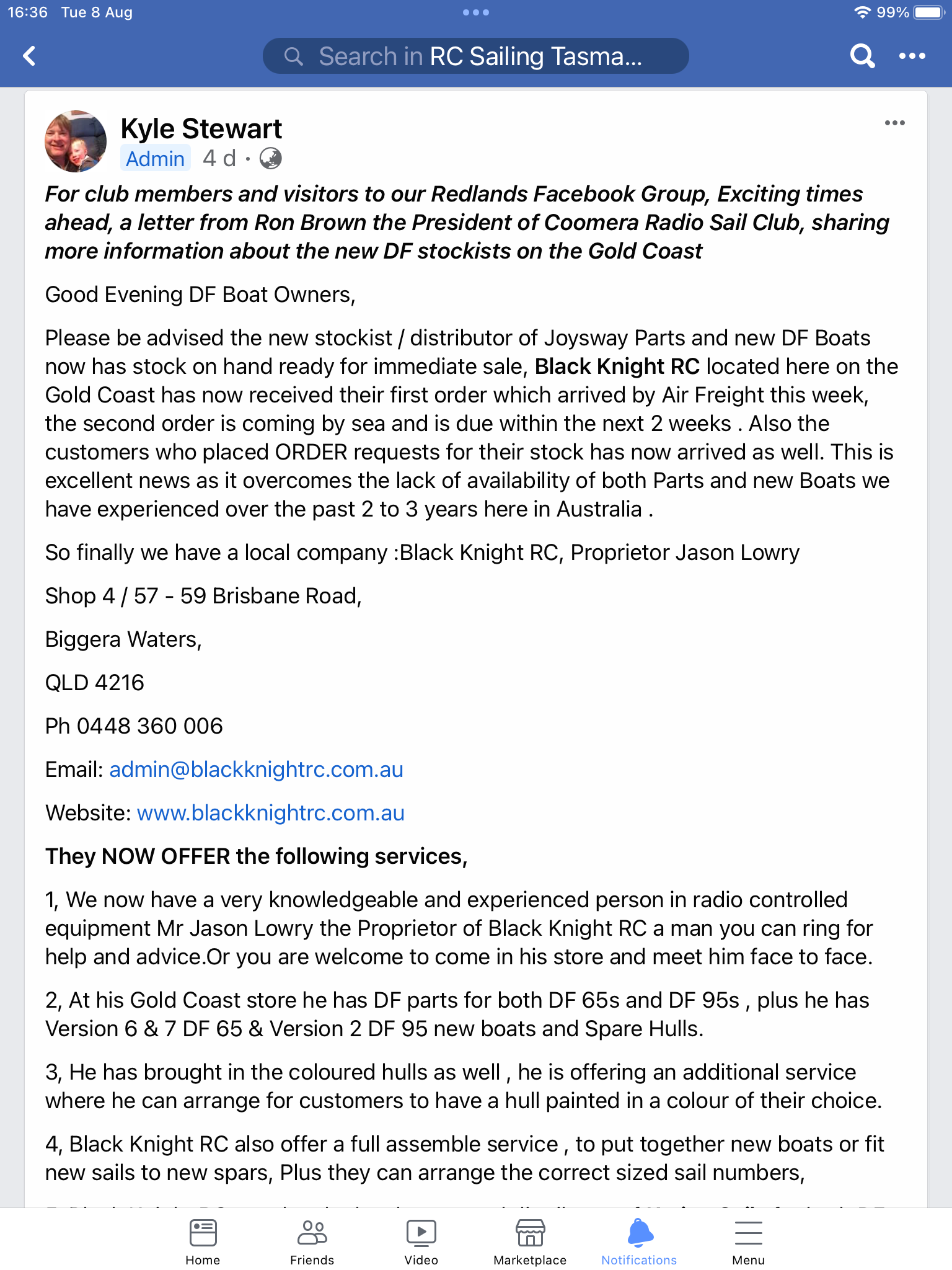 › RC BOATING › YACHTING › DF65’s & DF95’s › Alternate DF stockist on Gold Coast This topic has 2 replies, 3 voices, and was last updated December 31, 2024 at 12:49 am by Kyle Stewart. Viewing 2 reply threads Author Posts 8 August 2023 at 16:48 #14625 Bodge Kyle Stewart (RBRYC) recently advised there is a new DF stockist in Australia. Please see below extract from RC Sailing Tasmania Facebook page …. 11 August 2023 at 10:14 #14636 Predator Thanks for the update Kyle, I’m sure it will be appreciated by all. 31 December 2024 at 00:49 #18164 Kyle Stewart Hi all, Just checking to see that you are aware of Joysway’s entry into Australia as far as stocking a warehouse in Sydney. joysway.au is the website and they will provide a discount to members of the ADFRSA on application as well. Kyle Author Posts Viewing 2 reply threads You must be logged in to reply to this topic. Log In Username: Password: Keep me signed in Log In