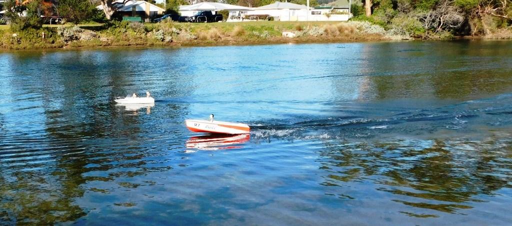 Scott, being his usual helpful self was involved with Vicki at Mark’s car. Sorting out speed controls, batteries and connections, eventually Mark was able to get Vicki into the water. With a new motor and electrical fittings Vicki was now ready and away she went.