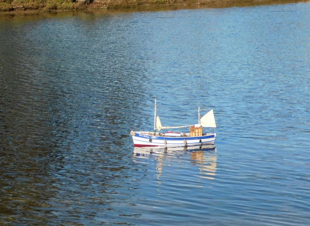 Peter again using the tree stump, readied his Blue and white launch for its run on the canal. Taking it all in its stride the launch looked smart.