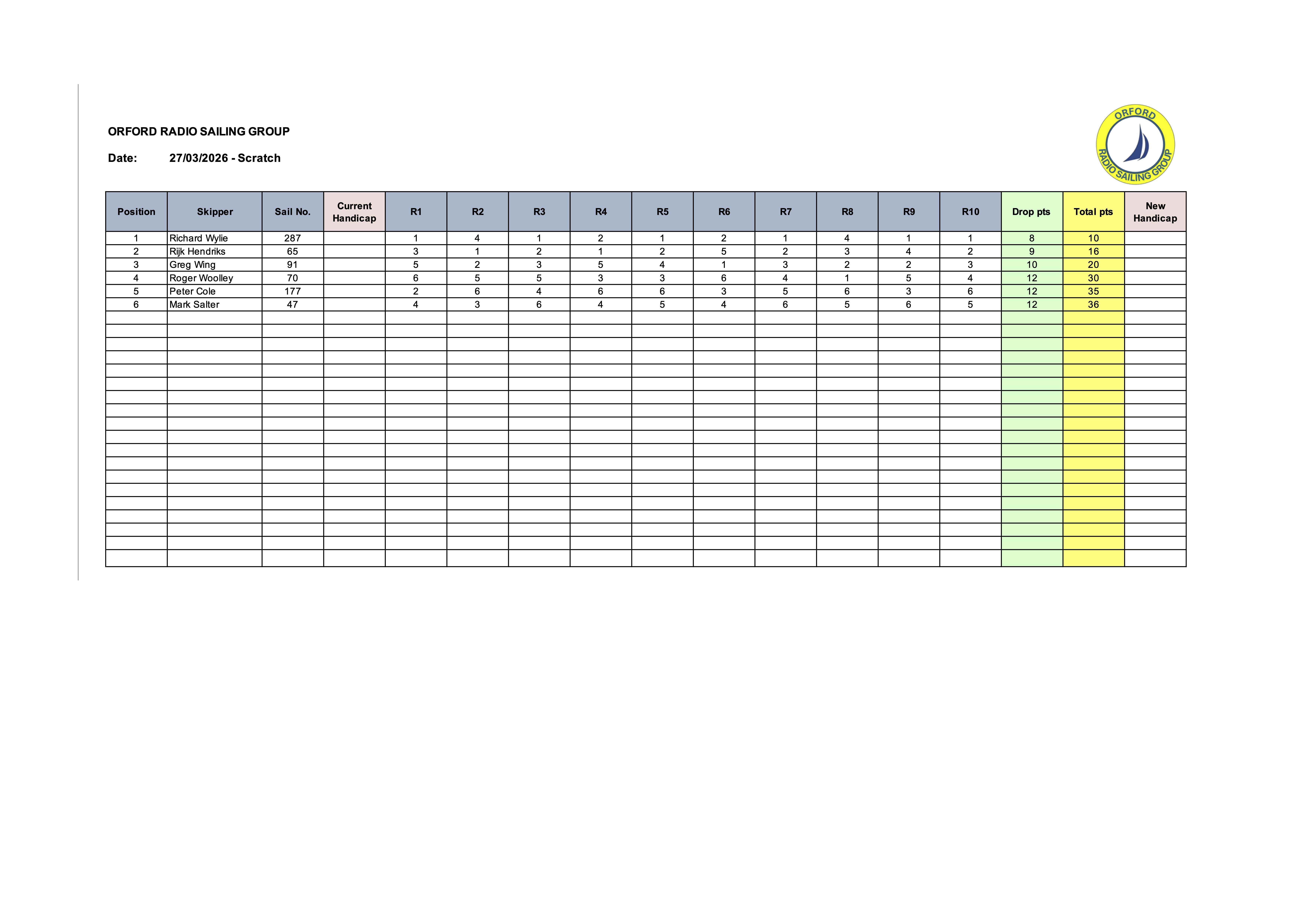 Six intrepid skippers raced today at the Pond in brisk autumn conditions. We enjoyed a keen south westerly with plenty of puffs to make things interesting and completed our 10 two lappers in quick time (with no takers to tackle three laps or additional races due to the cold fingers!!). A clear winner of our scratch racing was Richard with an impressive 6 wins on the day. He was followed by Rijk (2 wins) and Greg (1 win). Well done guys.
