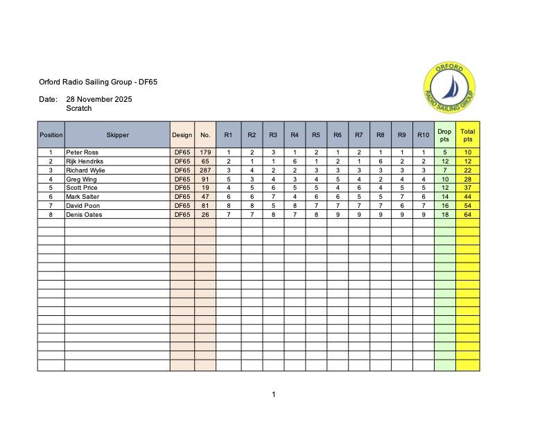 Hi all, another day of blustery conditions greeted participants at the Pond this morning. Possibly above “A” Rig range saw eight boats and skippers take to the water and kudos to those that competed and a couple that “chickened out” taking on admin roles ( it’s all so easy from the comfort of a chair!). There was a battle Royale at the top with Peter Ross taking out top spot from Rijk, these two sharing wins in all ten two lap races. Richard came third ahead of Greg whilst Scott and Mark enjoyed their own close battles. Well done everyone in the challenging conditions. Cheers Pete.