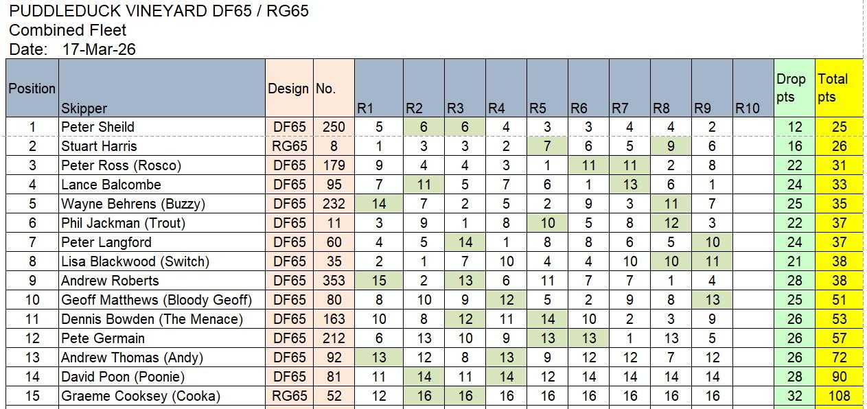 For all those sailors who have been complaining about lack of wind, today we had wind. Sometimes too much, occasionally too little and often from lots of directions. Still, 15 hardy souls battled it out across 9 races (10 really but one ended in total chaos, so had to be scrubbed). 12 sailors made it onto the handicap list which was a superb effort by all. Unfortunately Graeme suffered rudder damage after a collision early in the peace and missed most of the fun. Overall winner today was Peter Shield by one point over Stuart Harris.