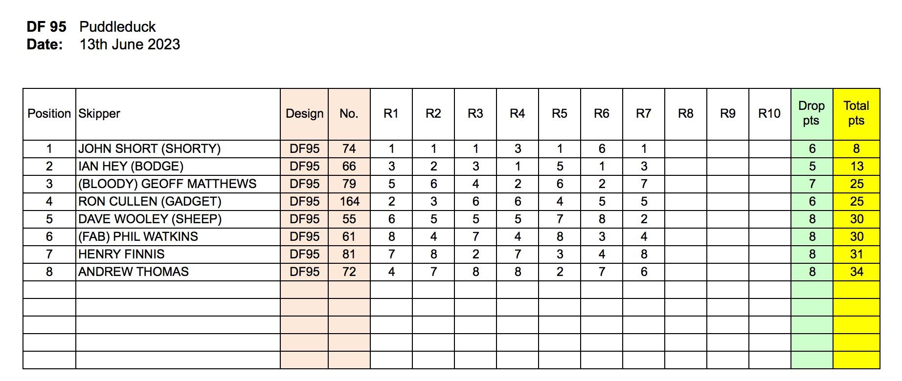 It is always close racing in the DF95’s and today all skippers made the podium at some stage. All skippers finished all of the races too. With just 7 races completed today we had just one discard in the race total.