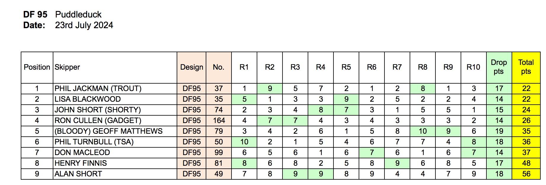 I managed third overall finishing the day with a race win. Lisa and Trout were tied together on 22 points for 1st place but Trout took the day on count-back due to having three race wins. Well done to both.