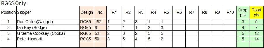 In the RG class we had 4 boats on the water with Gadget taking honours, from Bodge, Graeme and Peter. Well sailed to all skippers today in frustrating conditions.