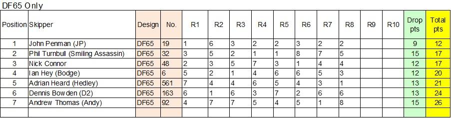 It should be noted that 7 of the 8 skippers all had a race win, with Gadget missing out with his RG65 but he scored 2 x second places, sooo close Gadget 😊 You did clean up in the RG65 only Class 🙂