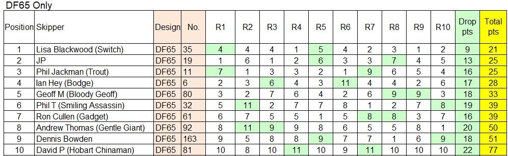 buoy 3. His sails looked perfectly trimmed as he gradually left me in his dust. A well-deserved win in race 8 Dennis.Good to see Bluey back with his RG65 but he seemed to have an out of sorts day to what he is accustomed. It may be because he’s getting back into it from being away for a while or maybe the lack of other RG’s today to compete with.