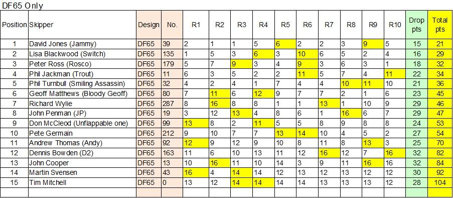 In the DF65 only results, It was Jammy, Lisa and Rosco taking third place. Well sailed by all skippers 😊