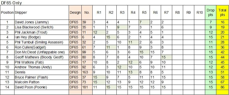 Back to the results …. In the combined fleet, it was Bluey with his RG65 taking ultimate bragging rights with 2 race wins, and 2 second places (total 16pts). Second place went to Jammy on 20 pts, and third place to Trout on 22 pts. In the DF only class it was Jammy first, Lisa (switch) second and Trout third, well done to all skippers 😊