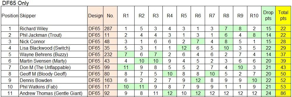 A very special congratulations to Richard for third in the combined class and after a countback with Trout in the DF class, Richard takes the honours! Is that your first outright place win Richard?