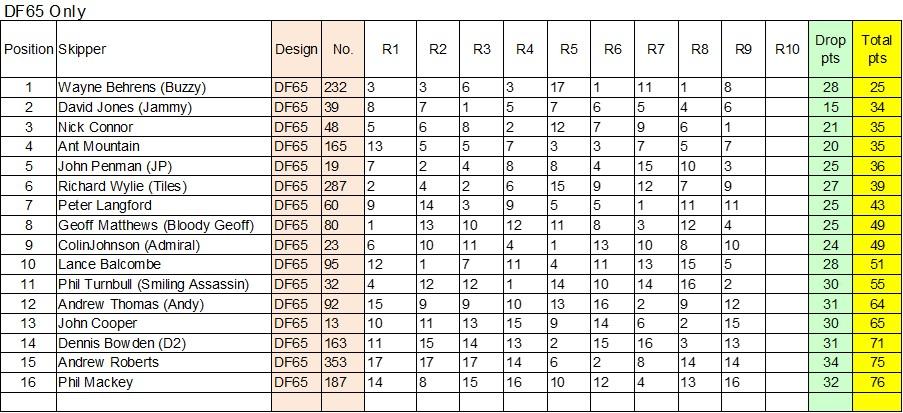 In the DF only class results, it was Buzzy 1st, Jammy 2nd and Nick 3rd with only 2pts separating 2nd – 5th place. Well sailed to all skippers on a relatively tidy day without the need for the rescue dinghy to be deployed.